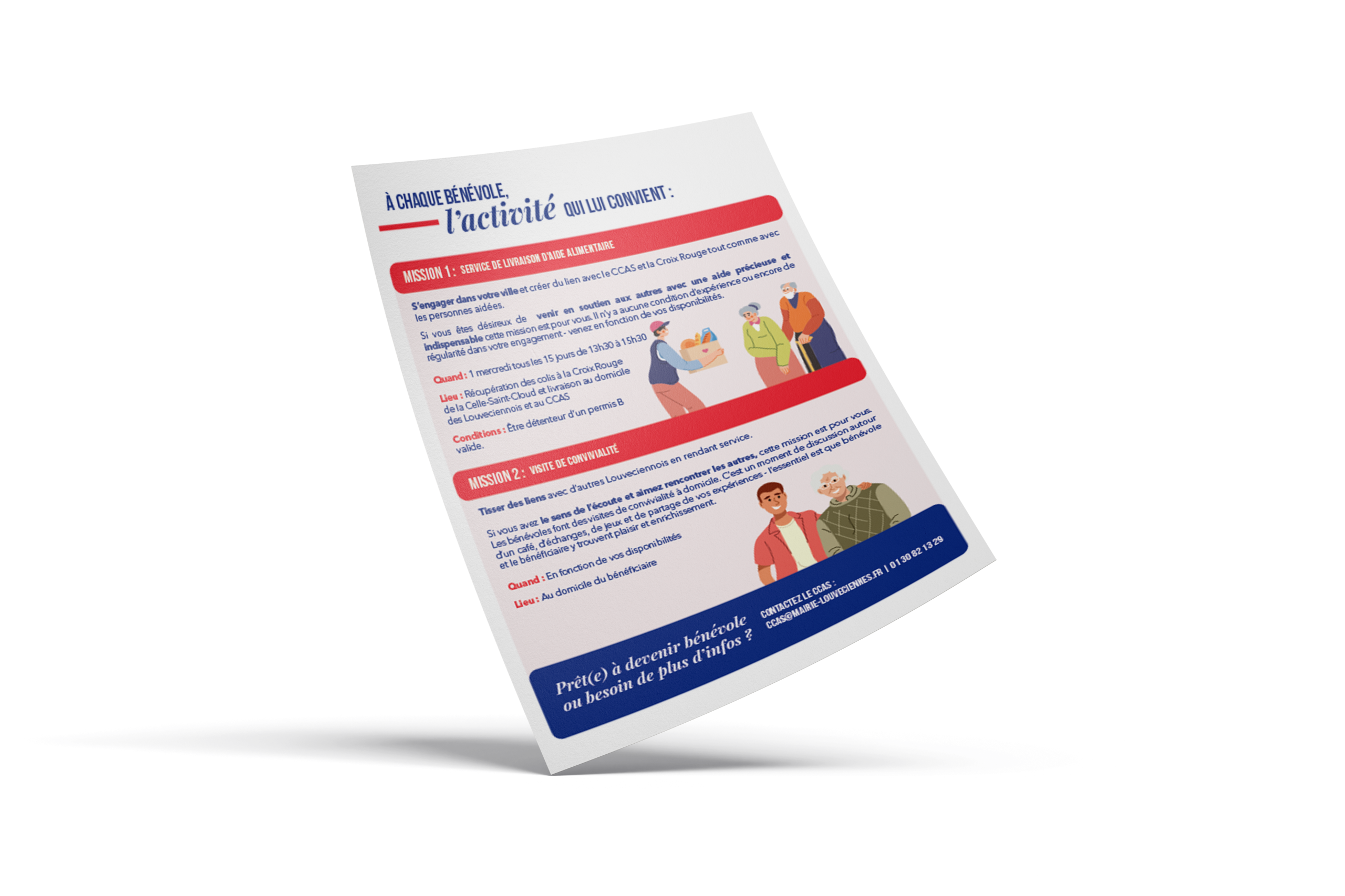 Design of two informational flyers for the Mairie du Louvecienne‘s Centre Communal d’Action Sociale (CCAS). The project focused on creating clear, accessible, and engaging visuals for public communication.